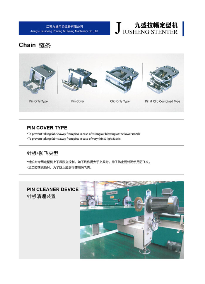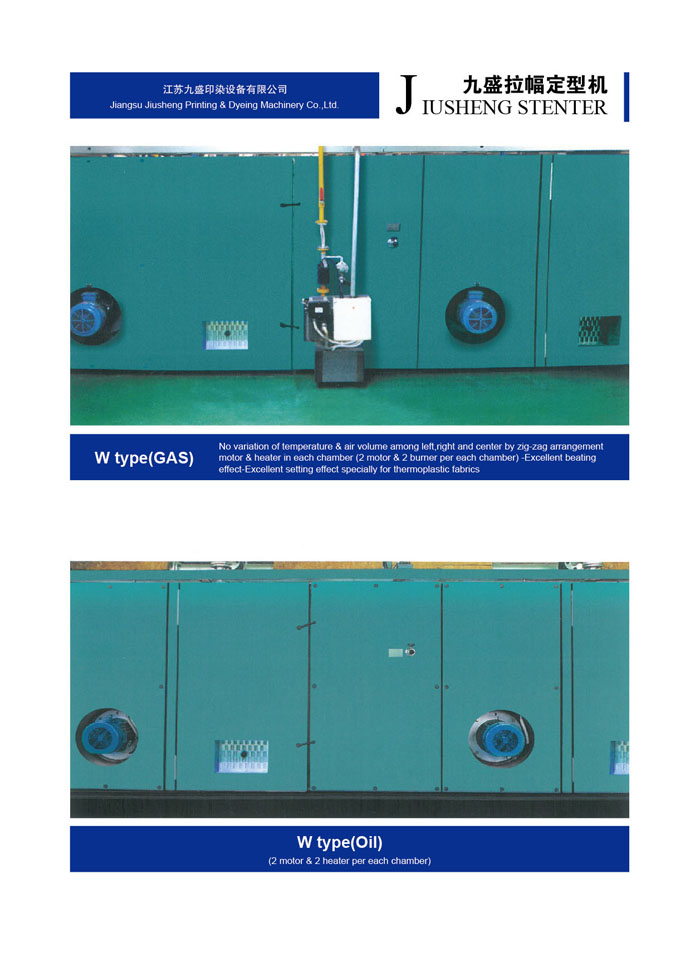 江蘇九盛印染設(shè)備有限公司(原江蘇鵬輝印染機械有限公司)創(chuàng)建于1986年,北長江,所在地區(qū)內(nèi)鐵路、高等級公路縱橫成網(wǎng),常州長江公路大橋飛架大江南北,水陸交通十分便利。公司有近二十年的熱定型機設(shè)計、生產(chǎn)經(jīng)驗、有批從事新型熱定機開發(fā)、設(shè)計的專業(yè)人才,具有豐富生產(chǎn)和制作經(jīng)驗的技師和技工。已成為國內(nèi)頗具名聲的機械制作企業(yè)。 樹脂定型是染整工程最后的程序,因此定型機的設(shè)計及操作技術(shù)成為決定織物品質(zhì)重要的一環(huán),九盛公司多年的經(jīng)驗改良完成新生代定型機,針對業(yè)者需要對于節(jié)省人力布匹張力的減少、緯紗的調(diào)整,風量的調(diào)節(jié),布邊控制及切邊損耗及至于熱能保持,維修工作,操作管理都有卓越表現(xiàn)及實際成果,而機械的研制及生產(chǎn)技術(shù)的發(fā)展是本公司創(chuàng)立的目標和宗旨。