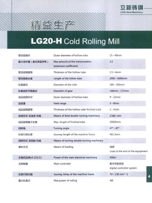 常州立新特種耐熱鑄鋼有限公司,地處江南水鄉(xiāng)古鎮(zhèn)一武進橫林,是全國著名的強化地板之鄉(xiāng)。 本廠歷史悠久,技術力量雄厚,制造設備齊全。擁有先進的鑄造生產(chǎn)線,1噸中頻感應加熱熔煉電爐;先進的化學分析設備和大型機床加工、埋弧堆焊機、電熱回火爐、拋丸機等。 公司依靠科學進步,結合國外先進技術和國內(nèi)需求,自行設計制造LGl5一H、LG20一H、LG30一H、LG40一H、LG50一H、LG60一H、LGl20一H型系列長行程環(huán)孔冷軋管機。對不銹鋼、碳鋼和有色金屬大減徑、大減壁軋制。亦可生產(chǎn)耐熱鑄鋼件、普通鑄鋼件、大型離心澆鑄件、大型軋輥堆焊等,同時可以為客戶加工生產(chǎn)大中型硬齒面齒輪及各類機械零部件備件。 公司另有焊管生產(chǎn)線1條,可生產(chǎn)直徑8—32mm的精密焊管、矩形管、冷拔管。應用于各種燈具生產(chǎn)及其它工業(yè)生產(chǎn)。 本公司注重產(chǎn)品質量,在同行業(yè)中率先通過了IS09000質量體系認證,并以優(yōu)良的服務取信于客戶。我們的宗旨是:質量第一、信譽第一、價格合理、交貨及時,竭誠歡迎國內(nèi)外客戶來人來函聯(lián)系洽談業(yè)務、光臨指導!