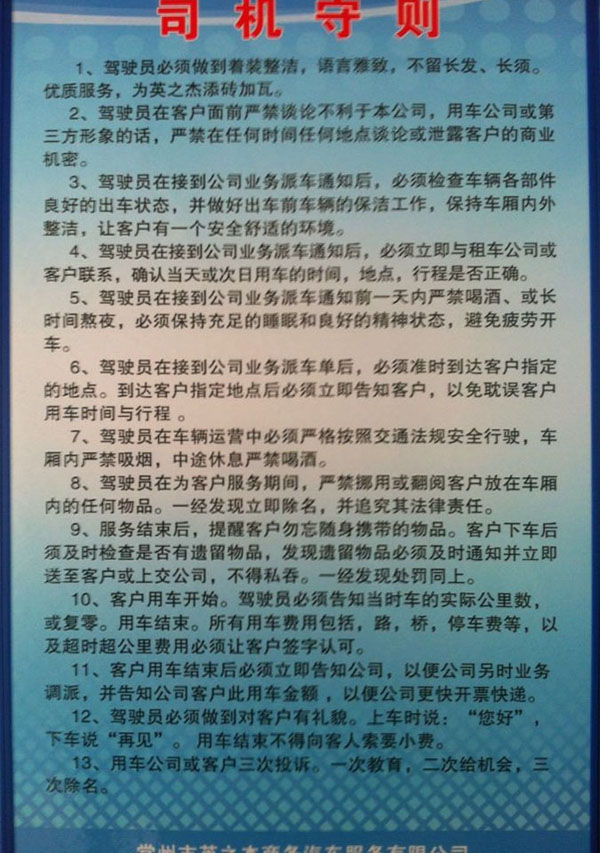 常州市英之杰商務(wù)汽車服務(wù)有限公司是一家專業(yè)從事企事業(yè)單位重要接待任務(wù)、企業(yè)高檔旅游等用車服務(wù)、以及中、小型高檔汽車的租賃業(yè)務(wù)。具有省交通廳批準(zhǔn)核發(fā)的客運(yùn)企業(yè)資質(zhì)證書。多年來,本公司從行業(yè)管理要求出發(fā),結(jié)合本公司的實(shí)際情況,堅(jiān)持“親和、誠信、專業(yè)、便捷”的服務(wù)品牌內(nèi)涵,注重團(tuán)隊(duì)建設(shè)、車輛管理、安全管理和優(yōu)質(zhì)服務(wù)等,進(jìn)一步提升本公司在我市客運(yùn)行業(yè)中的良好形象。本公司著重在服務(wù)、安全管理上下功夫,從經(jīng)營管理、服務(wù)理念上找差距:從提高適應(yīng)市場的能力上做文章。扎扎實(shí)實(shí)地抓好各項(xiàng)管理工作,做強(qiáng)而不盲目求大,做憂而不盲目求全,一切以客戶需求為需求。目前公司與常武地區(qū)的多家大型企事業(yè)單位和上市公司(如國茂減速機(jī)集團(tuán)、國泰鑄造集團(tuán)、騰龍汽車零部件股份有限公司、石墨烯研究院、海斯町發(fā)動機(jī)零部件有限公司等企事業(yè)單位)建立了良好的租車合作關(guān)系