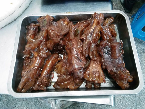 常州市武進(jìn)區(qū)嘉澤蔣師傅鹵菜店經(jīng)營已有30多年,本產(chǎn)品采用祖?zhèn)髑旯欧郊右钥茖W(xué)營養(yǎng)的獨(dú)特鹵料配方、加入30多種名貴香料和中藥材秘制而成,達(dá)到色、香、味、形的俱加效果。做出來的產(chǎn)品不僅口感鮮美、香盈撲鼻、而且色澤誘人!肉感細(xì)膩、韌勁適度、有嚼勁、香辣入骨、不加塞牙縫,食用后具有特別的回味宇香,是極好的送禮佳品。