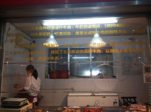 天寧區(qū)五香居牛肉店經(jīng)營鹵汁牛肉、牛肚的鹵菜店,1983年創(chuàng)始于常州小河沿菜市場,經(jīng)長期實(shí)踐,積累經(jīng)營、摸索出鹵汁牛肉的獨(dú)特方法,已自成一家特色。 采用新鮮貨源,精選加工、原汁原味,以肉質(zhì)細(xì)膩、鮮嫩,口味獨(dú)特成為二十多年來品質(zhì)的保證,鑄就了五香居店的品牌牛肉,以,創(chuàng)始人名字命名的商標(biāo)——“全瑞”牌鹵汁牛肉。