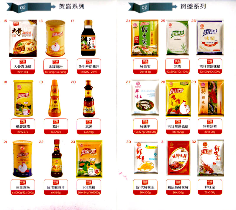 公司占地面積23500平方米,花園式工廠、廠房面積18500平方米,員工330余名,其中擁有中、高級(jí)職稱管理和技術(shù)人員58名,生產(chǎn)場(chǎng)地均按食品和藥品GMP要求設(shè)計(jì)、全封閉車間、中央空調(diào)系統(tǒng)、閉路電視監(jiān)控系統(tǒng)。已建成成三條雞精,雞粉生產(chǎn)線。一條雞汁生產(chǎn)線。一條鮮味汁生產(chǎn)線。一條醬汁精膏類生產(chǎn)線,規(guī)劃年生產(chǎn)能力達(dá)30000噸。 "賀盛"品牌取自《詩·大雅·下武》中"受天之祜、 四方來賀";《易經(jīng)》中"富有謂之大業(yè),日新之謂盛德",賀盛企業(yè)師法源遠(yuǎn)流長中華飲食文化,融匯中西健康美食調(diào)味。相繼研發(fā)生產(chǎn)出高品質(zhì)的"賀盛牌"味精、雞精、雞粉、雞汁、湯王、鮑魚醬王、鮮味汁調(diào)味素和各種風(fēng)味熱反應(yīng)精膏等系列產(chǎn)品。二十年來"賀盛"產(chǎn)品質(zhì)量獲得廚藝界專業(yè)人士和消費(fèi)者的一致好評(píng)和高度認(rèn)可。 賀盛企業(yè)和產(chǎn)品相繼榮獲1995年"首界中國國際食品博覽會(huì)金獎(jiǎng)",2001年企業(yè)通過ISO-9001國際質(zhì)量體系認(rèn)證,2003年江蘇省"計(jì)量保證確認(rèn)單位",2004年獲得自營出口權(quán),2005年賀盛雞精榮獲"江蘇名牌產(chǎn)品",2006年賀盛商標(biāo)被評(píng)為"江蘇省著名商標(biāo)",2007年通過HACCP認(rèn)證,全部產(chǎn)品均通過QS食品安全認(rèn)證,并積極努力爭創(chuàng)中國名牌,中國馳名商標(biāo)。 公司銷售網(wǎng)點(diǎn)建設(shè)發(fā)展迅速,相繼組建上海、南京、河南、海南、新疆全資分公司;辦事處、經(jīng)銷商覆蓋全國,并出口日本、香港及東南亞地區(qū)。二十年來,在公司總裁周國林先生帶領(lǐng)下,全體同仁秉承"厚德載物、自強(qiáng)不息"宗旨,發(fā)揚(yáng)"以人為本、科技創(chuàng)新、自我加壓、爭創(chuàng)一流"的企求精神;致力于傳承中華飲食文化,融化西方美食精粹,不斷的研發(fā)、創(chuàng)新,奉獻(xiàn)更多更好的調(diào)味料,讓生活更有滋味。