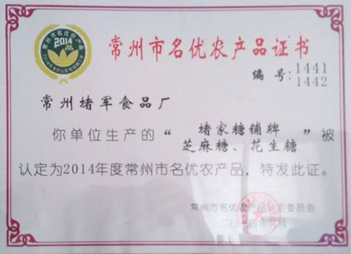 “堵家糖鋪”牌芝麻糖。2013年度生產(chǎn)量已達(dá)100噸左右實(shí)現(xiàn)銷量額為250萬(wàn)元,同時(shí)本廠的產(chǎn)品已進(jìn)入“瑞和泰"“好比家”“名仁”常州機(jī)場(chǎng)等高端銷售區(qū)域,并與“瑞和泰”形成戰(zhàn)略合作伙伴關(guān)系:為瑞和泰貼牌加工生產(chǎn)。 常州堵軍食品廠生產(chǎn)的芝麻糖是以:大米和麥芽用相傳百年歷史的循環(huán)水濾蒸煮法提煉出其中的麥芽糖漿,再用芝麻,花生,桂花,橘皮,面粉為輔料,歷23道工序手工制作而成。它是一種具有營(yíng)養(yǎng)豐富性和抗衰老性食品。富含蛋白質(zhì),脂肪,維生素A,維生素B,鈣鐵鎂,卵磷脂,硫胺素等營(yíng)養(yǎng)元素。 全麥芽芝麻糖是一種獨(dú)具地方特色的大眾性休閑食品。有其獨(dú)特的地方性和文化性。無論是逢年過節(jié)還是日常生活都是饋贈(zèng)親友,款待賓客的首選佳品之一。