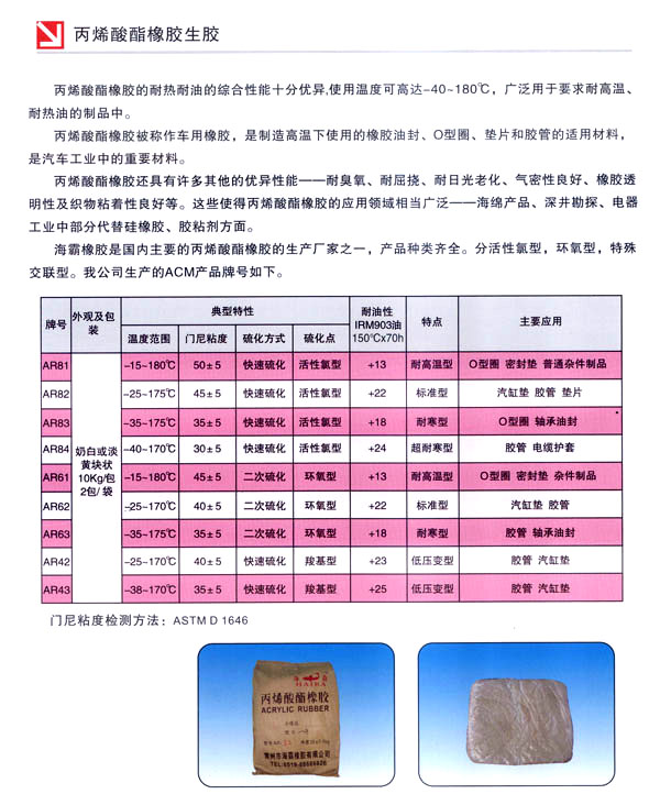 常州海霸橡膠有限公司成立于2005年,位于常州與江陰接壤處的武進(jìn)區(qū)橫山橋鎮(zhèn),西距常州18公里。北距江阻20公里,滬寧高速公公司占地面積30865平方米,其中建筑面積9800平方米,廠(chǎng)區(qū)環(huán)境優(yōu)雅,有山有水,綠化率達(dá)到1 00%,是一座名符其實(shí)的江南花園式工廠(chǎng)。 公司堅(jiān)持“信譽(yù)打天下,質(zhì)量占市場(chǎng)”的企業(yè)運(yùn)營(yíng)理念,建立,健全現(xiàn)代企業(yè)管理制度,珍視用戶(hù),用“心”為國(guó)內(nèi)外客商服務(wù)。全方位整合多種資源,使企業(yè)步入快速發(fā)展的軌道,打造出一流的化工企業(yè)。 公司生產(chǎn)的聚丙烯酸酯系列橡膠,以及丙烯酸酯橡膠混煉膠、乙烯丙烯酸酯橡膠混煉膠、氟橡膠膠混煉膠、氟硅橡膠混煉膠、氫化丁腈混煉膠等。質(zhì)優(yōu)物美,深得國(guó)內(nèi)外客商的青睞。 展望未來(lái)。海霸人將繼續(xù)以?shī)^斗不息的精神和百倍信心與廣大客戶(hù)一起共創(chuàng)美好明天。