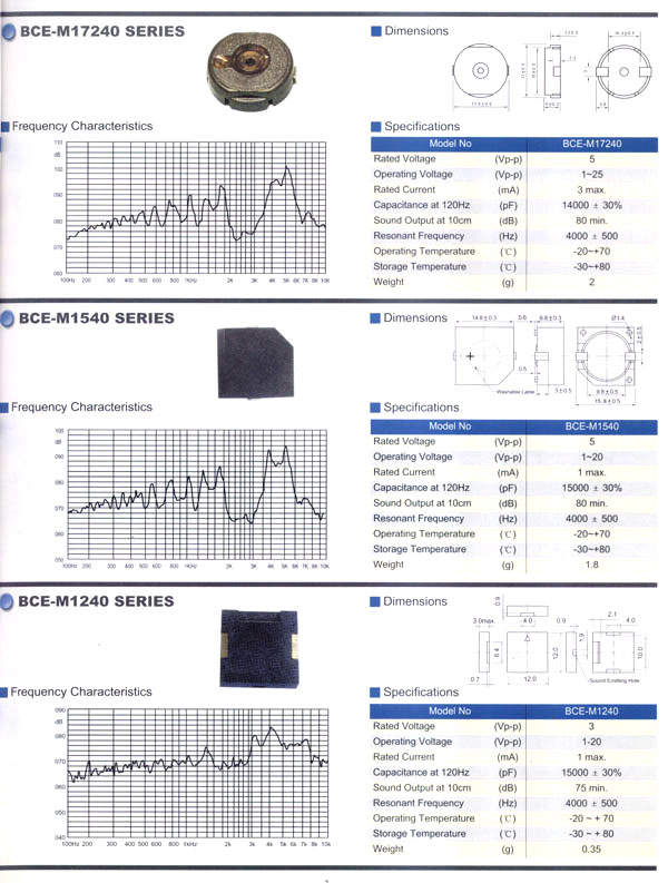 本公司生產(chǎn)的蜂鳴器結(jié)構(gòu)緊密,材質(zhì)輕,功耗低,質(zhì)量可靠,使用方便,價格合理,采用最新技術(shù)電子元件。廣泛應(yīng)用于打印機(jī)、電話、定時器、尋呼機(jī)、洗衣機(jī)、取款機(jī)、報警器、電腦終端機(jī)、復(fù)印機(jī)、電唱機(jī)、汽車及摩托車電子設(shè)備、空調(diào)設(shè)備、萬用表、遙控裝置、各種安全裝置以及便攜或電池式迷你型裝置。