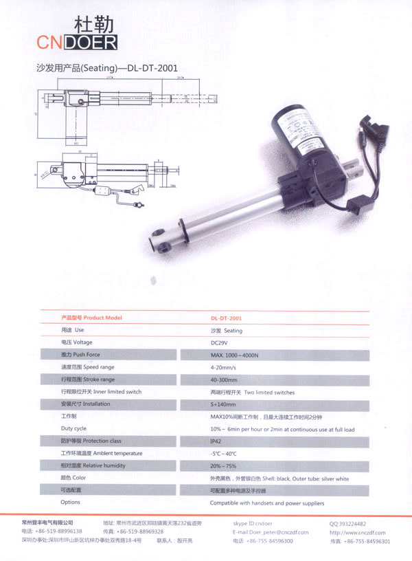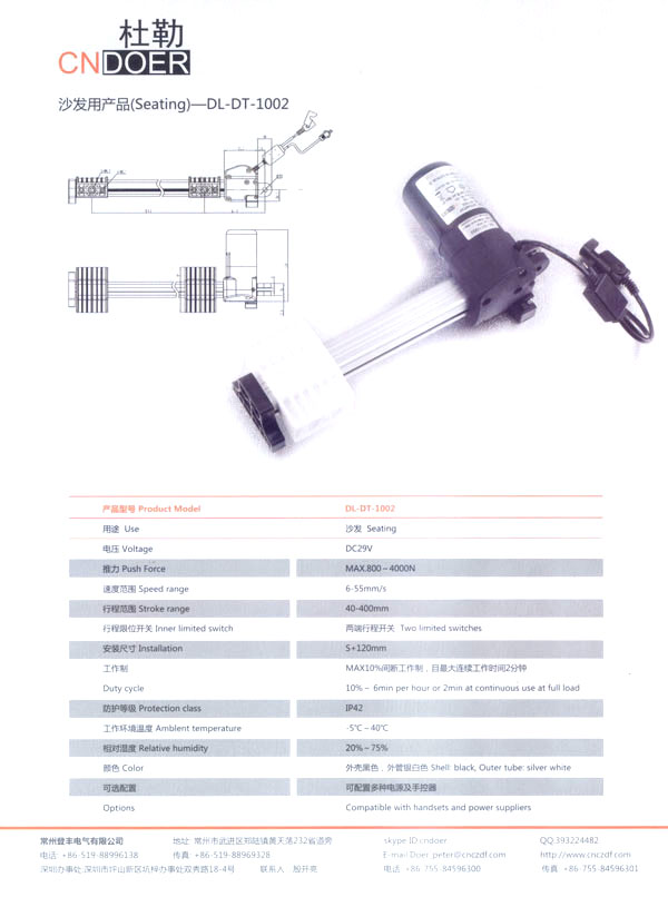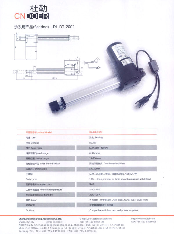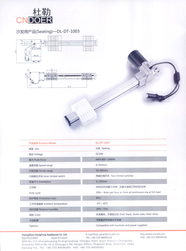 常州登豐電氣有限公司位于人杰地靈的江南古城—常州武進區(qū)鄭陸鎮(zhèn)東青。緊臨常州火車站、滬寧高速公路、312國道、長江港等,交通十分便捷。 公司最早創(chuàng)辦于1989年,歷經(jīng)20多年的艱苦創(chuàng)業(yè),本著“誠信為本、品質(zhì)至上”的經(jīng)營理念,公司生產(chǎn)的“武微”牌空調(diào)電機、“蘇杰”牌電動車電機和采用國外先進技術(shù)制作的動力強勁、同時具有過載保護和消音裝置的綠色環(huán)保產(chǎn)品:“登豐”、“聚美”牌食物垃圾處理器。這些產(chǎn)品在全國各地市場均享有較高的知名度。 如今,公司為謀求新的發(fā)展,立足于國內(nèi),放眼于國際市場,投入了大量的人力、財力、物力,購置了先進的全自動生產(chǎn)流水線、全自動繞線機和各類精密的測試儀器,多功能隔音房等設(shè)施,全新推出了具有美好前景和廣闊市場的主打產(chǎn)品:“杜勒”牌系列線性推桿及各類配套電機。該產(chǎn)品已通過ISO9001認(rèn)證,產(chǎn)品外觀新穎、制作精良、噪音小、操作靈活簡便,暢銷國內(nèi),遠銷國外,被廣泛應(yīng)用于電動沙發(fā)、醫(yī)療護理床、手術(shù)床、按摩椅等眾多領(lǐng)域!岸爬铡碑a(chǎn)品已被越來越多的客戶所青睞和認(rèn)可! 公司竭誠歡迎各界朋友、新老客戶前來洽談合作,共謀發(fā)展。我們也將不斷開拓創(chuàng)新,提高產(chǎn)品質(zhì)量,完善售后服務(wù)體系,努力打造成為行業(yè)先鋒企業(yè)!
