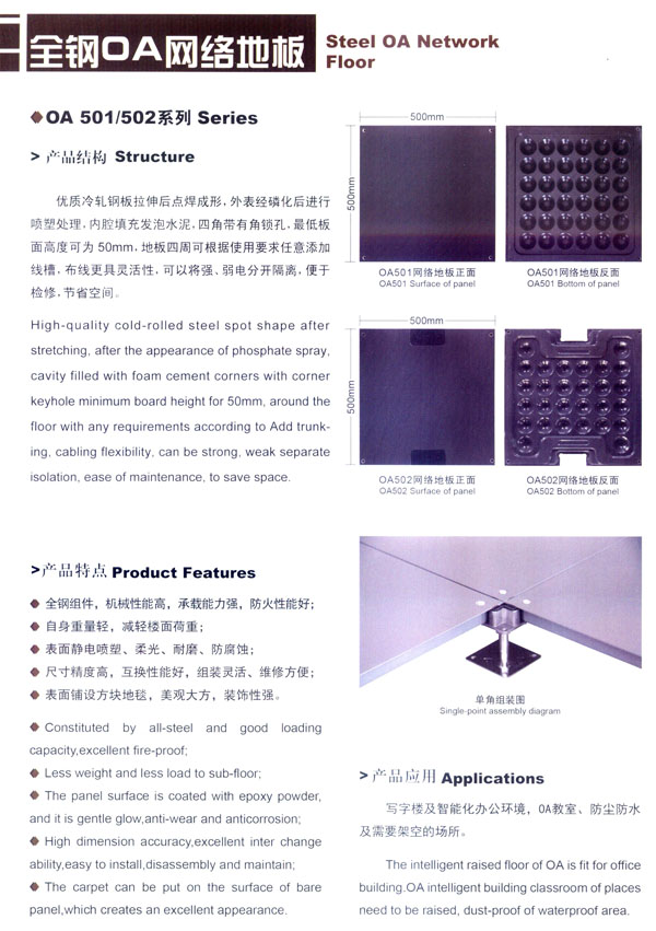 常州市蘇杰機(jī)房地板有限公司是高架地板專(zhuān)業(yè)制造商,專(zhuān)業(yè)從事防靜電地板、OA網(wǎng)絡(luò)地板等各種系列高架地板的研發(fā)、制造和銷(xiāo)售,并提供各種機(jī)房地面和智能化辦公區(qū)地面的整體解決方案。 公司廠區(qū)面積30000平方米,擁有全鋼地板生產(chǎn)線兩條,木基、硫酸鈣基地板生產(chǎn)線各一條,年綜合產(chǎn)能100萬(wàn)平方米。生產(chǎn)蘇杰牌防靜電地板系列和蘇杰牌網(wǎng)絡(luò)地板系列,主要產(chǎn)品有全鋼防靜電架空地板、全鋼OA網(wǎng)絡(luò)地板、瓷磚貼面防靜電地板、硫酸鈣防靜電地板、木基防靜電地板、鋁合金防靜電地板、防靜電通風(fēng)地板等。 蘇杰人秉承“科技先導(dǎo)、市場(chǎng)為本、持續(xù)發(fā)展”的企業(yè)發(fā)展觀,堅(jiān)持“以先進(jìn)技術(shù)裝備為基礎(chǔ),以現(xiàn)代化管理為依托,以專(zhuān)業(yè)化服務(wù)為保障”的宗旨,使公司不斷發(fā)展壯大成為現(xiàn)代化的企業(yè)。 蘇杰人堅(jiān)持“嚴(yán)謹(jǐn)思考、嚴(yán)密操作、嚴(yán)格檢查、嚴(yán)肅驗(yàn)證”的品質(zhì)理念和“以客戶(hù)為中心”的服務(wù)理念,始終致力于產(chǎn)品的技術(shù)創(chuàng)新和質(zhì)量創(chuàng)優(yōu),為用戶(hù)提供優(yōu)質(zhì)的產(chǎn)品、合理的價(jià)格和貼心的服務(wù)。 常州市蘇杰機(jī)房地板有限公司將不斷開(kāi)發(fā)和制造一流的產(chǎn)品,吸引和培養(yǎng)一流的人才,提供和完善一流的服務(wù),樹(shù)立和保持一流的形象,與時(shí)俱進(jìn),共謀發(fā)展。