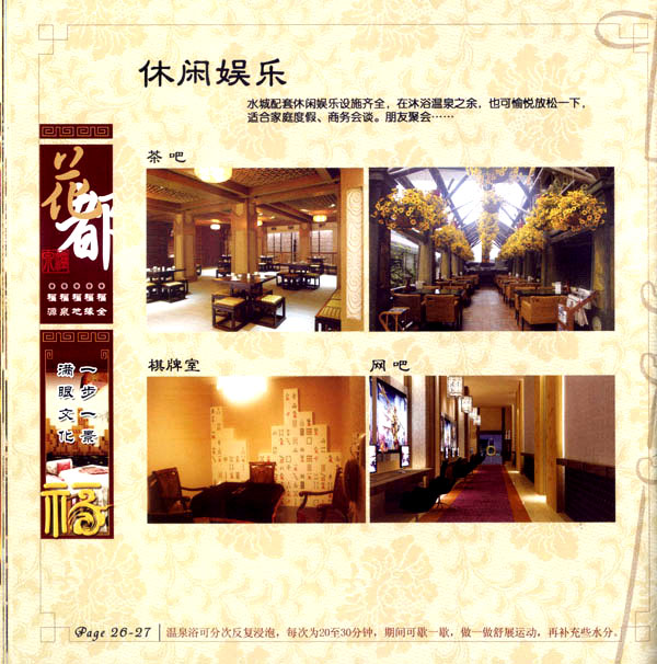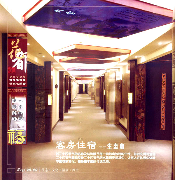 淹城花都溫泉水城孕育天地之精華,悅身、悅?cè)、悅心、悅神。置身其中泉水潺潺,霧氣繚繞、花瓣飄香,恍若仙境!稗渌略谑郑ㄏ銤M衣”,花都溫泉的浪漫與溫潤在這里完美展現(xiàn)。 花都溫泉水城包括洗浴區(qū)、戲水世界、露天溫泉、自助餐廳、生態(tài)房、別墅區(qū)、紅文化房、VIP區(qū)等多種功能區(qū)域,是集溫泉養(yǎng)生、休閑住宿、演藝會務(wù)為—體的休閑度假勝地,給賓客帶來江南小鎮(zhèn)的浪漫水城之旅。 古木新枝畔賓客對酒當(dāng)歌,溪泉石椅旁把茶品啜。 淹城-三勤生態(tài)酒店,這里是一處綠色生態(tài)的美食家園。此地鬼斧神工.奇水異石,和風(fēng)細(xì)雨林中穿過,引百鳥朝來暮歌;這里集生態(tài)餐飲、演藝、中小型會務(wù)為一體,將現(xiàn)代裝飾風(fēng)格和古雅拙樸的自然裝修完美整合;這里聚集大江南北名廚,推出精致綠色美昧佳肴。來到這里,賓客可享田園至美之景,品舌尖至鮮之味,實乃人生一大樂事。