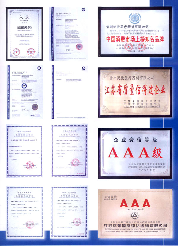 常州悅康醫(yī)療器材有限公司(原常州市鶴壽醫(yī)用器材廠) 是專業(yè)生產(chǎn)一次性使用無(wú)菌醫(yī)療器械的股份制企業(yè)。本公司始建于1986年,現(xiàn)公司面積32000平方米,建筑面積為18500平方米。其中十萬(wàn)級(jí)潔凈區(qū)面積為7500平方米,目前擁有固定資產(chǎn)3000余萬(wàn)元,現(xiàn)有員工380人,主要生產(chǎn)一次性使用輸液(血)器、一次性使用注射器、一次性使用靜脈針、一次性使用注射針及一次性使用高分子醫(yī)療制品,年生產(chǎn)能力超2億套,產(chǎn)品銷售歷年處于供不應(yīng)求的好勢(shì)頭,銷售覆蓋全國(guó)28個(gè)省市、市、自治區(qū)1000多家醫(yī)療單位,受到用戶好評(píng),成為江蘇省生產(chǎn)一次性醫(yī)療用品的重點(diǎn)企業(yè)。 本公司具有自營(yíng)進(jìn)出口經(jīng)營(yíng)權(quán),通過ISO9002質(zhì)量管理體系和CE認(rèn)證。我廠將以優(yōu)異的質(zhì)量、合理的價(jià)格、及時(shí)供貨為各單位提供良好的服務(wù)和方便。