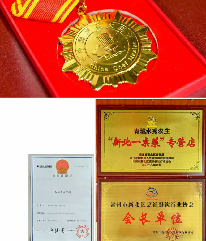 常州青城水秀農(nóng)業(yè)專業(yè)合作社成立于2013年11月21日,注冊(cè)資金200萬。位于常泰高速孟河收費(fèi)站旁,離338省道l公里之遠(yuǎn),交通十分便捷。 本合作社共占地面積120多畝,其中生態(tài)漁業(yè)垂釣水面50畝,綠色生態(tài)禽類養(yǎng)殖區(qū)10畝;林木花卉苗木基地區(qū)面積達(dá)到50畝。融合生態(tài)農(nóng)業(yè)、都市農(nóng)業(yè)、莊園農(nóng)業(yè)、園林園藝于一體,著力建設(shè)觀光休閑的新型城郊都市農(nóng)業(yè)示范基地,F(xiàn)有常年在職員10人。營業(yè)至今5年,現(xiàn)有大小包廂12個(gè),農(nóng)莊接待能力為25桌。本農(nóng)莊主營特色家常菜有“青城仔鵝”、“長江鰻魚”、“紅燒青魚尾巴”,“鵝湯煲豆腐”,還有農(nóng)家傳統(tǒng)自制的特色小吃“農(nóng)家八寶飯”、“燜鵝蛋”。本農(nóng)莊的服務(wù)理念足:以綠化、生態(tài)、環(huán)保餐飲為目標(biāo),傳統(tǒng)與現(xiàn)代相結(jié)合的烹飪模式。 “青城仔鵝”,青城仔鵝是魏孝地方的土特產(chǎn),更是常武地區(qū)的菜肴新秀,為了把品牌發(fā)揚(yáng)光大,2015年本農(nóng)莊特申請(qǐng)青城仔鵝為專利。青城仔鵝雖然歷史不是很長,從上世紀(jì)九十年代初期開始至今也有20多年,成為常武地區(qū)有名的“白烏龜”之鄉(xiāng),由于“白烏龜”是天然綠色食品,活殺現(xiàn)供,田園風(fēng)味,農(nóng)家特色,倍受歡迎,至今名氣遠(yuǎn)揚(yáng)。他獨(dú)特之處在于生態(tài)環(huán)境生長和生態(tài)綠色清飼料為主食喂養(yǎng),生長期不超過60-70天,采用獨(dú)特烹飪工藝,具有農(nóng)家田園特色風(fēng)味。仔鵝肉鮮味美,營養(yǎng)價(jià)值極高。俗話說:“天上的鵝肉,地上的驢肉。稱鵝肉為“世界綠色食品之王”。 2018年“青城仔鵝”入選新北區(qū)評(píng)選出的“十大特色名菜”之首,法人朱全林還獲得“中國烹飪大師”稱號(hào)。幾年中,還參加由區(qū)、鎮(zhèn)舉辦的各項(xiàng)美食文化活動(dòng):春江江鮮莢食文化節(jié),新北區(qū)江鮮美食文化旅游節(jié)暨“中洋杯”河豚技能大賽等。