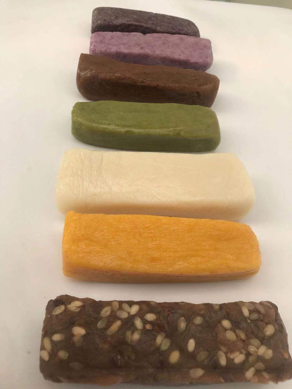 腳踏糕本名“年糕”,按常州周邊地區(qū)的風俗習(xí)慣,在春季前夕,各家各戶都要蒸年糕,吃年糕!案狻敝C音“高”,過年吃年糕被賜予“年年高”,一年高一年,鋒吉祥之意,表達這人們對未來美好生活的憧憬和良好的祝愿。今天小編要帶大家的就是一家至今保持著傳統(tǒng)手工制作的鈺鋒糕點坊。 鈺鋒糕點坊位于常州鄭陸鎮(zhèn)三皇廟范家莊,一個比較偏僻的村莊,雖然這家作坊不大,但香糯絲滑,軟糯適中,韌勁十足的腳踏糕吸引了無數(shù)的食客。制作一條腳踏糕要從淘米,浸泡,碾粉,鋪粉,一層一層的鋪下去,需要無數(shù)道制作工序,這些都是店主孫煥公公老周,憑著幾十年的經(jīng)驗,加上店主孫煥從不馬虎的決心! 這“腳踏”也并非赤腳上陣,而是把蒸好的糕倒入早以準備好的框子里,用布包裹好,上面再用薄膜包好,再蓋上布,再換上專門腳踏的布鞋,踩的時候要勻稱,左右腳要配合好,不然糕會高高低低,不平整,最后再拿蠟燭線拆成一條小長條,再拿帶包裝好,如此又香又糯的腳踏糕就大功告成了。 店主孫煥為了讓更多的人認識和了解常州腳踏糕的傳統(tǒng)文化和美食,她在傳統(tǒng)工藝中增加了適合現(xiàn)代文化的多種口味,她在糕里加入南瓜,紫薯,老紅糖,大麥汁,血糯米,核桃,葡萄干,紅棗等食材,做出五顏六色,純天然的口味,深受食客們的喜愛,不管是送人還是自己吃都非常新穎。 (重陽糕)重陽糕的由來,九九重陽,九是陽數(shù),也是陽數(shù)中最大的數(shù),九月初九,兩九相重,為之重陽,古人有重陽登高的習(xí)俗。高于糕同意,寓意人活九十九,生活步步高,秋景勝春光,夕陽無限好。夕陽紅成了老人對自己美好的祝愿和希望,所以從某種意義上來講它“祝壽糕”“長壽糕”重陽糕在常州地區(qū)是家喻戶曉的,下面小編帶你去一家至今保持傳統(tǒng)手工制作的鈺鋒糕點坊看一下吧。鈺鋒糕點坊位于常州市天寧區(qū)鄭陸鎮(zhèn)三皇廟范家莊,偏僻的小村莊,雖然有點偏僻,但是每到重陽節(jié)到來,每天還是有很多食客來訂購和購買店主孫煥做的多種口味的重陽糕。要想做出松軟香糯的重陽糕,原材料和糯米和梗米的配比也很重要,調(diào)整好比例開始淘米,浸泡,釓粉,放入糖攪拌,篩粉,糕底部放上荷葉,中間的餡心都是孫煥自己熬制,口感,香糯松軟,店主孫煥為了吸引更多現(xiàn)代年輕人,她在粉里加入南瓜,紫薯,紅糖,血糯等,色彩搭配很出跳,吸引來了很多食客,孫煥2019年開始自愿捐贈重陽糕給敬老院,她說這樣的公益活動自己很喜歡,雖然金額不大,缺表達了她的一份心意,并稱這樣的公益活動她每年都會做。