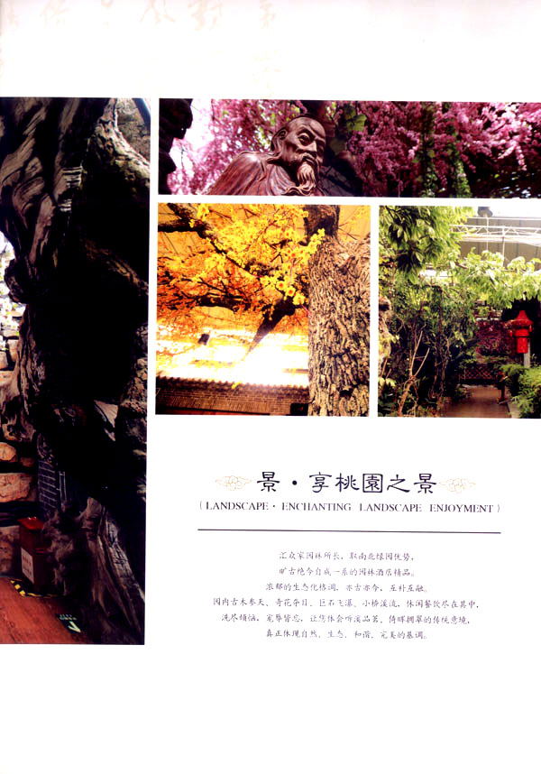 淹城花都溫泉水城孕育天地之精華,悅身、悅?cè)、悅心、悅神。置身其中泉水潺潺,霧氣繚繞、花瓣飄香,恍若仙境!稗渌略谑,弄花香滿衣”,花都溫泉的浪漫與溫潤在這里完美展現(xiàn)。 花都溫泉水城包括洗浴區(qū)、戲水世界、露天溫泉、自助餐廳、生態(tài)房、別墅區(qū)、紅文化房、VIP區(qū)等多種功能區(qū)域,是集溫泉養(yǎng)生、休閑住宿、演藝會務(wù)為—體的休閑度假勝地,給賓客帶來江南小鎮(zhèn)的浪漫水城之旅。 古木新枝畔賓客對酒當(dāng)歌,溪泉石椅旁把茶品啜。 淹城-三勤生態(tài)酒店,這里是一處綠色生態(tài)的美食家園。此地鬼斧神工.奇水異石,和風(fēng)細(xì)雨林中穿過,引百鳥朝來暮歌;這里集生態(tài)餐飲、演藝、中小型會務(wù)為一體,將現(xiàn)代裝飾風(fēng)格和古雅拙樸的自然裝修完美整合;這里聚集大江南北名廚,推出精致綠色美昧佳肴。來到這里,賓客可享田園至美之景,品舌尖至鮮之味,實(shí)乃人生一大樂事。