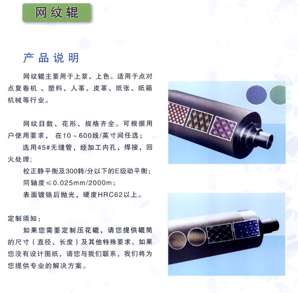 常州市武進(jìn)區(qū)禮嘉鎮(zhèn)萬(wàn)超機(jī)械有限公司專(zhuān)業(yè)生產(chǎn)、加工花輥、鏡面輥、無(wú)紡布設(shè)備,及各類(lèi)機(jī)械配件。產(chǎn)品廣泛應(yīng)用于金屬、塑料、皮革、紙張、玻璃、木材、無(wú)紡布、衛(wèi)生材料、包裝裝潢等行業(yè)。