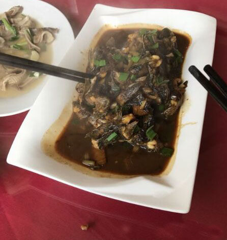 菜肴介紹:以滆湖小刀魚為新鮮的原材料,佐以自家的配料,在油鍋中煎炸而成。炸得金燦燦的小刀魚上,撒上把新鮮的香菜末,看著就讓人流口水。 菜肴介紹:當天的農家菜評比中,以豬蹄為主題的農家菜有好幾道,可只有這道慶蘭豬爪,獲得了評委們的一致青睞。色澤鮮亮,熬得入味,吃完后口中有回味。當天的比賽中,評委還“嫌”慶蘭樓送來參評的豬蹄太少了,七八個評委都不夠吃。 “下婆魚本來叫下坡魚,大家吃了都覺得好,一傳十十傳百地就給叫走了音,變成下婆了。”清粼粼的滆湖水里,一網(wǎng)撈出千百條鮮靈靈的小魚兒。新鮮干凈的小 炸得酥脆,就是一道最好的下酒或是下粥菜。揣在兜里當 也很不錯呀,嘎嘣咬著,極松脆極鮮美的,魚刺也都炸酥啦,無論是老人還是年輕人、小孩都能吃。 除了漏湖里的魚,嘉澤的鵝、雞、鴨等家禽也遠近聞名。也是因為生態(tài)環(huán)境好的緣故,一群學農的博士在這里開起了大水牛市民農園,主打的就是有機食材。