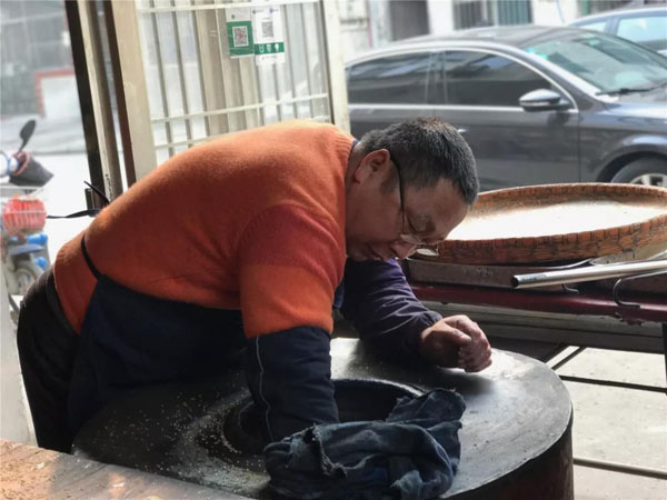 常州大麻糕已經(jīng)有150多年的歷史,常武各地的麻糕師傅、麻糕店數(shù)不勝數(shù),但今天小編要帶大家去的是一家隱藏在背街小巷里,至今仍保持著傳統(tǒng)手工制法的麻糕店。 沈正昌麻糕店位于遙觀鎮(zhèn)東街、國寧寺旁,雖然店門口連個(gè)招牌都沒有,卻不妨礙四面八方的食客慕名而來,大伙看中的正是這些純手工制作,原汁原味的大麻糕。如今的店主沈國平已經(jīng)是沈家第四代做麻糕的傳人了。 秉承著爺爺那輩傳下來的手藝,他們制作的麻糕塊大實(shí)誠,用料講究,口感酥軟,深受四周鄉(xiāng)鄰的歡迎。“我們還是老法,酥是生板油身擦的,餡里也是生板油摻糖,是真的綠色產(chǎn)品,沒有添加劑,沒有防腐劑,也不用甜蜜素,都是真家伙! 每天凌晨一兩點(diǎn)鐘,沈國平就要去采買當(dāng)天最新鮮的豬板油,回來清理干凈,和上面粉攪拌均勻,制成面團(tuán)。麻糕的制作主要由沈國平妻子和兩個(gè)姊妹來完成。揉面、搓胚子、配油酥,按餡心、搟均勻,整個(gè)過程行云流水,連貫無比。 當(dāng)爐火燒得正旺,溫度能高達(dá)近300度,沈國平就上場了,赤手空拳,一撈一貼,一秒鐘的功夫,就把麻糕貼到了桶壁上。不過幾分鐘的功夫,麻糕就出爐了。經(jīng)過炭火爐子烤出來的,比一些電烤爐烤出的更香、更脆。
