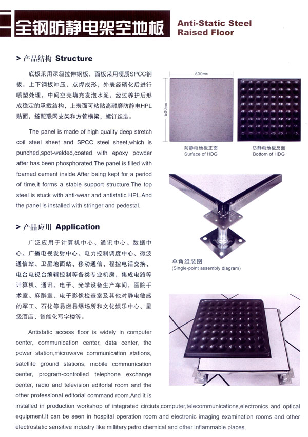 常州市蘇杰機房地板有限公司是高架地板專業(yè)制造商,專業(yè)從事防靜電地板、OA網絡地板等各種系列高架地板的研發(fā)、制造和銷售,并提供各種機房地面和智能化辦公區(qū)地面的整體解決方案。 公司廠區(qū)面積30000平方米,擁有全鋼地板生產線兩條,木基、硫酸鈣基地板生產線各一條,年綜合產能100萬平方米。生產蘇杰牌防靜電地板系列和蘇杰牌網絡地板系列,主要產品有全鋼防靜電架空地板、全鋼OA網絡地板、瓷磚貼面防靜電地板、硫酸鈣防靜電地板、木基防靜電地板、鋁合金防靜電地板、防靜電通風地板等。 蘇杰人秉承“科技先導、市場為本、持續(xù)發(fā)展”的企業(yè)發(fā)展觀,堅持“以先進技術裝備為基礎,以現(xiàn)代化管理為依托,以專業(yè)化服務為保障”的宗旨,使公司不斷發(fā)展壯大成為現(xiàn)代化的企業(yè)。 蘇杰人堅持“嚴謹思考、嚴密操作、嚴格檢查、嚴肅驗證”的品質理念和“以客戶為中心”的服務理念,始終致力于產品的技術創(chuàng)新和質量創(chuàng)優(yōu),為用戶提供優(yōu)質的產品、合理的價格和貼心的服務。 常州市蘇杰機房地板有限公司將不斷開發(fā)和制造一流的產品,吸引和培養(yǎng)一流的人才,提供和完善一流的服務,樹立和保持一流的形象,與時俱進,共謀發(fā)展。