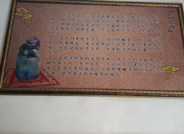 常州市武進(jìn)鄭陸焦溪古村羊肉館選用放養(yǎng)的上等山羊,采用獨特的配方精心煮制而成,其特點:湯呈清色,肉質(zhì)細(xì)膩,味道純正,不腥不膻,色香味俱全。絕對不含任何食品添加劑,是純綠色食品。特別在冬季,有滋補(bǔ)、祛寒、健身養(yǎng)胃之功效! 在傳統(tǒng)羊肉湯基礎(chǔ)上,力求肉鮮湯鮮的制作原則,用火、刀工、器皿等諸多方面加以改進(jìn),F(xiàn)宰活羊,以優(yōu)質(zhì)的山羊為主,羊不超年半齡的捶羯蒙羊膻羯為標(biāo)準(zhǔn)。羊湯的主要技術(shù)就是羊肉湯的獨特配方,羊湯技術(shù)和羊湯的做法完全是兩碼事,羊湯技術(shù)是純正的羊湯的原始積累技術(shù),也就是包括純正羊肉的配方,羊湯做法如放入羊骨頭、羊肉等,而天然居羊湯之所以出類拔萃,因其羊的湯呈清色狀,鮮潔爽口,不腥不膻,不粘不膩,獨具特色。用新鮮羊骨、羊肉、羊肚、羊頭、羊腸等羊下水,加以傳統(tǒng)香料配方熬制。由于湯呈清色,喝起來香而不膻,入口鮮潔爽口、熱燙濃香,營養(yǎng)豐富。