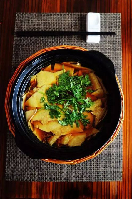 油湯橫山橋百葉 Q嫩爽滑、豆香濃郁的百葉深受老常州人的喜愛,在常州以橫山橋的最為知名。采用太湖灣農(nóng)家散養(yǎng)的土雞熬湯,雞油透亮,雞湯香醇,滿滿一鍋雞味滲透在百葉之中,美味可見一斑。這是一道跨越常州地域,卻結(jié)合常州各地物產(chǎn)的佳肴,也讓往來(lái)食客深深地感受到了太湖美,常州更美。