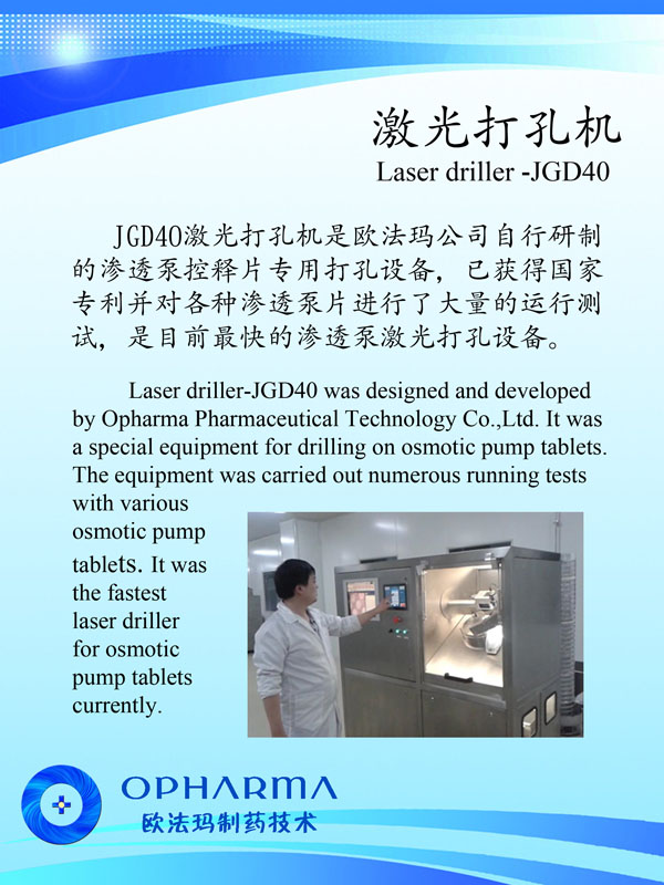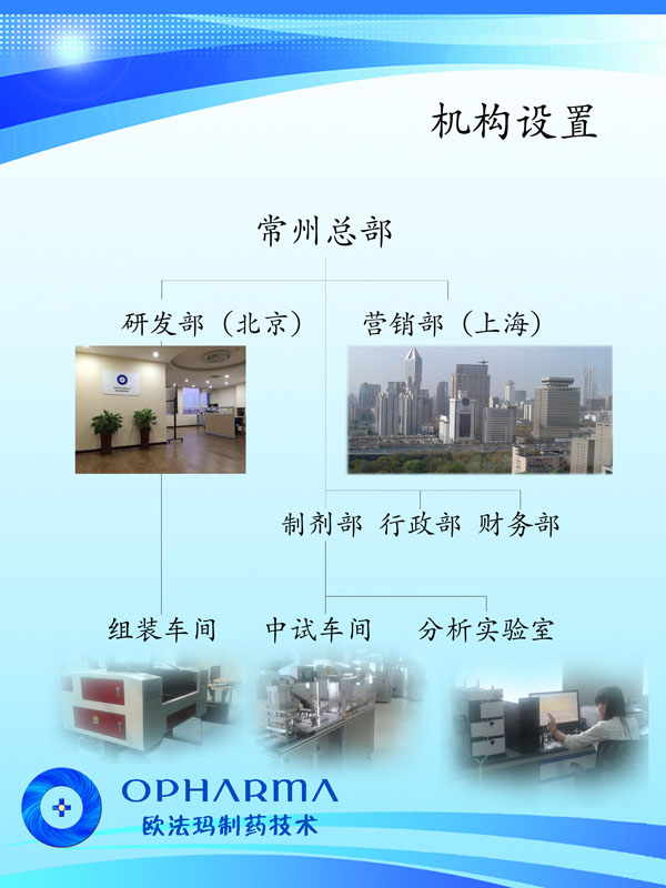 常州歐法瑪制藥技術(shù)有限公司位于長江三角洲黃金腹地——常州。地理位置優(yōu)越、交通便捷,由鐵路、公路、水路、民航形成了一張立體交叉的交通網(wǎng)絡(luò)。 公司創(chuàng)建于2013年,是一家集研發(fā)、生產(chǎn)和銷售為一體,專業(yè)從事高速激光打孔機(jī)、滲透泵制劑研發(fā)、生產(chǎn)和銷售。目前公司擁有員工20人,科技研發(fā)和技術(shù)人員占員工總數(shù)80%以上,其中本科以上學(xué)歷占80%以上。 公司始建以來,以前瞻的科學(xué)規(guī)劃,通過自主研發(fā),解決了高速激光打孔機(jī)諸多的世界難題,使之達(dá)到40片/秒以上且精確打孔的國際領(lǐng)先水平;同時開發(fā)廢片自動識別、剔除功能,以滿足客戶的實際所需。公司與瑞士等國家研究機(jī)構(gòu)的科技合作,以高速激光打孔機(jī)為基礎(chǔ),建設(shè)了滲透泵制劑研發(fā)和中試生產(chǎn)車間,開發(fā)了多種藥物的滲透泵制劑,形成了從關(guān)鍵設(shè)備研制,新制劑開發(fā)、工藝配套,到批量生產(chǎn)測試的滲透泵制劑開發(fā)全過程技術(shù)團(tuán)隊和研究設(shè)施。公司瞄準(zhǔn)現(xiàn)代新型釋藥系統(tǒng),吸收國內(nèi)外高端人才,努力開拓控緩釋技術(shù)、靶向給藥技術(shù)及智能給藥技術(shù)。 2013年公司被評為黑馬大賽“創(chuàng)業(yè)組50強(qiáng)”、“領(lǐng)軍人才創(chuàng)業(yè)重點企業(yè)”;2014公司通過了IS09001-2008質(zhì)量管理體系認(rèn)證、CE認(rèn)證、江蘇省質(zhì)量信得過企業(yè)。