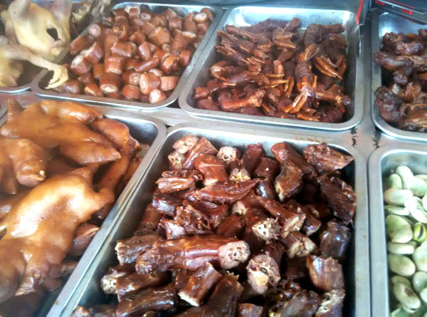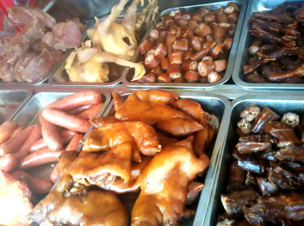 武進(jìn)區(qū)嘉澤老街十字路口,有一家不起眼的鹵菜專賣店,店面雖然不大,但一年365天每天來購買鹵菜的消費(fèi)者卻絡(luò)繹不絕。 這家鹵菜店名叫鎖林鹵菜店,店主名叫萬鎖林。 今年已花甲之年的萬鎖林,出生在武進(jìn)區(qū)的一個(gè)鹵菜世家。解放前,正逢亂世,1927年其父萬友良17歲隨父從蘇北海安至夏溪鎮(zhèn)落戶,全家以經(jīng)營小吃、鹵菜為生。1956年萬友良經(jīng)營的鹵菜小吃店公私合營,起名為東方飯店(后改名為夏溪飯店),萬友良帶領(lǐng)其七個(gè)兒子全部從事餐飲事業(yè)。1972年,排行第六的萬鎖林初中畢業(yè)被分配到嘉澤飯店工作,直至1982年夫妻倆著手創(chuàng)辦鎖林鹵菜館,專業(yè)從事鹵菜的加工和銷售。 鎖林鹵菜采用祖?zhèn)髋浞剑谱鞴に嚱?jīng)清洗—汆水—再清洗—油汆—加料—燒制—包裝等多道工序。萬鎖林在祖?zhèn)髅胤降幕A(chǔ)上,不斷探索創(chuàng)新,使鹵菜口味更加香醇可口。他還在菜肴中加入茴香、陳皮、桂皮等20多種中草藥,使產(chǎn)品兼具食用保健作用。 由于鎖林鹵菜色、香、味俱佳,而且價(jià)格合理,遠(yuǎn)近數(shù)十里群眾紛紛前來選購目前,該店已形成鴨頭、雞爪、豬頭肉、五香牛肉等四大系列,產(chǎn)品遠(yuǎn)銷北京、上海、浙江、海南及蘇、錫、常各地,深受各地消費(fèi)者青睞。 購買地址: 一、嘉澤鎮(zhèn)菜市場內(nèi) 二、嘉澤鎮(zhèn)老街十字路口 電話:0519-83802086 訂購熱線:18915002160