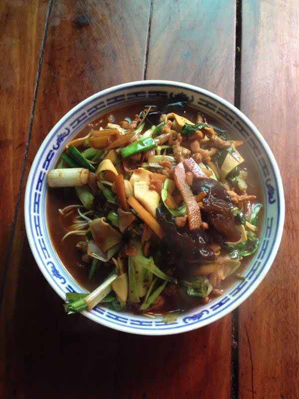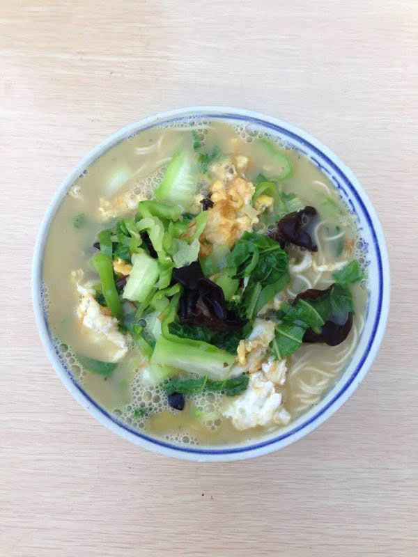 武進區(qū)青城面館經(jīng)營面積280平方米左右,主要特色是現(xiàn)炒肉絲,素菜蓋澆面,面館創(chuàng)始人今年63歲的王蘭珍,她對美食有著高于常人的悟性。她開過饅頭店,開過小飯館,承包過食堂,燒菜、取料樣樣在行,吃過的人常常贊不絕口。 20世紀(jì)初,在跟德興面館的老師傅學(xué)了做面手藝后,王蘭珍萌生了開一家面館的想法,除了可以養(yǎng)家糊口,最重要的是想讓更多人嘗嘗自己的手藝。于是,她在自己的住處擺起了幾張桌椅,面館就算正式營業(yè)了。因為家住青城橋,王蘭珍干脆取名“青城面館”。 “從早上5點多開始營業(yè),到下午1點多打烊,一天至少要賣掉300多碗面,用掉近160斤面粉!睘楹吻喑敲骛^的面條如此受歡迎,兒媳婦陸偉紅說秘訣在于湯頭和澆頭。湯頭分白湯和紅湯,白湯是由10斤豬骨頭熬制而成,湯色清澈而味道濃郁;紅湯以骨頭湯作底湯,加入茴香、甘草、草果等20多種中草藥,以及糖、醬油等調(diào)味品,鮮而不腥,散發(fā)出陣陣香味。 和一般面館事先燒制好澆頭,放在盆里供客人選擇不同,青城面館的澆頭都是一份份現(xiàn)炒的,特別講究食材的新鮮。就拿暢銷的肉絲蔬菜紅湯面來說,要先起猛火,把肉絲、木耳、蘑菇、青菜等食材放一起煸炒至香,然后澆在撈起的面條上。一碗面出來,現(xiàn)炒的澆頭與面條融合,味道香郁至極。 遙觀人的早晨,醒得有些早。對很多遙觀人來說,美好的一天是從青城面館開始的。那一碗碗現(xiàn)炒的蓋澆面,筋道爽滑、醬香味濃,溫存著他們的胃與記憶,帶來刻進骨子里的家鄉(xiāng)味道。