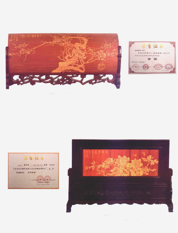 白堅仁,1956年生于江蘇常州,國家級非物質(zhì)文化遺產(chǎn)、江蘇省級傳承人、江蘇省名人,高級工藝美術(shù)師,是留青竹刻泰斗白士風(fēng)之子。從小深受先父的熏陶和指點,寒來署往、夜以繼日,不僅學(xué)到了先父厚樸豁達的品格,更深得先父竹刻藝術(shù)的真諦。除繼承刻有先父創(chuàng)立的橫臺屏、筆筒等作品外,更注重作品的創(chuàng)新。多年來,經(jīng)過艱辛的探索和反復(fù)的實踐,努力吸取姐妹藝術(shù),成功地采用了多片拼裝,配上紅木框架,制成大型的圖文并貌的作品,如帽籠、大插屏、鏡框掛件、四條屏、甚至中堂。在構(gòu)圖內(nèi)容、技法變化、裝幀形式等方面,都走出了創(chuàng)新之路,使所制作品適應(yīng)了現(xiàn)代人們的審美情趣和生活需求,實現(xiàn)了多年來要使留青竹刻與書畫作品同樣也能懸掛于廳堂之上的愿望。作品多次在國內(nèi)、國際展覽中獲獎,并獲得了留青竹刻史上的首位二項國家專利擁有者。