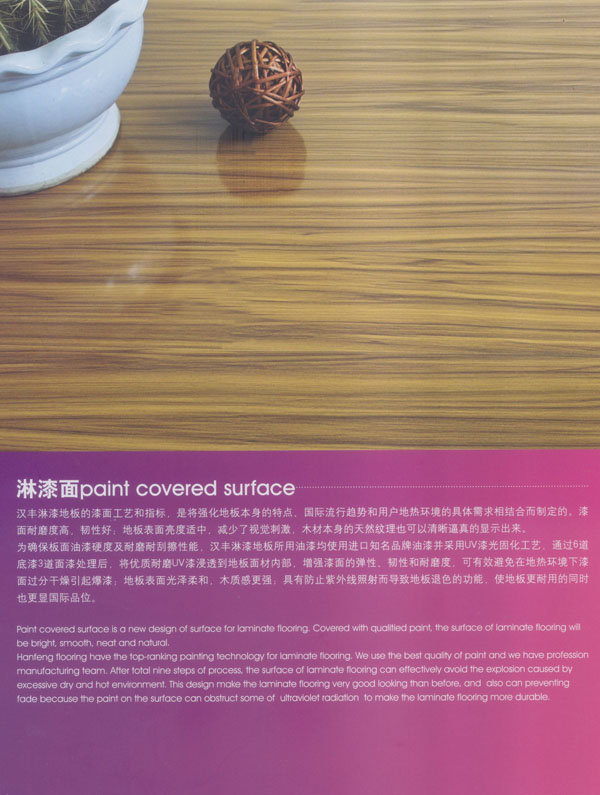 常州漢豐裝飾材料有限公司是一家涉及強(qiáng)化地板制造、屏風(fēng)鋁材生產(chǎn)、進(jìn)出口貿(mào)易的大型公司。2001年公司投入重資.全面引進(jìn)世界頂級(jí)一體化自動(dòng)流水生產(chǎn)線(xiàn)和具有國(guó)際先進(jìn)水準(zhǔn)的德國(guó)權(quán)威木地板生產(chǎn)技術(shù),興建強(qiáng)化地板生產(chǎn)基地。多年以來(lái).一直不斷加強(qiáng)生產(chǎn)設(shè)備、廠房基礎(chǔ)投入,目前公司年生產(chǎn)強(qiáng)化地板能力已經(jīng)達(dá)到了500萬(wàn)平方米,步入國(guó)內(nèi)一流行列,具備了雄厚的國(guó)際競(jìng)爭(zhēng)力。 漢豐地板以奉獻(xiàn)生活中最完美的地板為發(fā)展目標(biāo),時(shí)尚流行的設(shè)計(jì)風(fēng)格和多樣化的產(chǎn)品類(lèi)型,贏得了市場(chǎng)的廣泛贊譽(yù)和肯定。產(chǎn)品嚴(yán)格按照歐洲標(biāo)準(zhǔn)檢測(cè)強(qiáng)化木地板的各項(xiàng)性能指標(biāo).達(dá)到百分百的國(guó)際技術(shù)標(biāo)準(zhǔn),確保了每一塊地板都有著上乘品質(zhì),是綠色環(huán)保的好地板。并先后通過(guò)了Isc)9001國(guó)際質(zhì)量管理體系認(rèn)證,IS014001國(guó)際環(huán)境管理體系認(rèn)證.中國(guó)環(huán)境標(biāo)志產(chǎn)品認(rèn)證,深得用戶(hù)的一致好評(píng),是寫(xiě)字樓、商場(chǎng)、大型超市、學(xué)校、建筑樓宇、娛樂(lè)場(chǎng)所、家用私宅等鋪裝的首選地板。