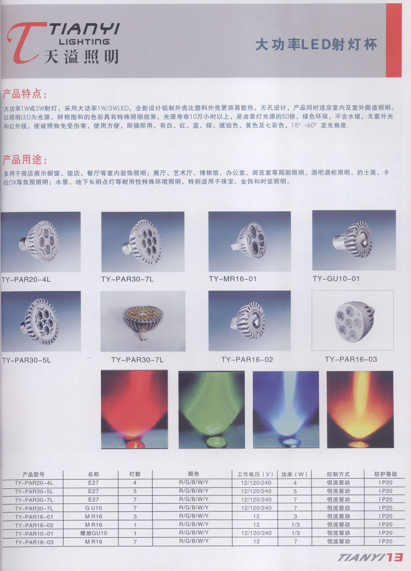 天溢照明是中國(guó)領(lǐng)先的專(zhuān)業(yè)從事LED廣告照明裝飾燈具設(shè)計(jì)、系統(tǒng)開(kāi)發(fā)、燈具制造、工程服務(wù)一體的專(zhuān)業(yè)型公司,本公司產(chǎn)品已廣泛應(yīng)用于全國(guó)大多數(shù)城市夜景亮化景觀照明、酒店休閑娛樂(lè)夜場(chǎng)夢(mèng)幻燈光、戶內(nèi)外廣告宣傳、建筑及室內(nèi)照明以及家居裝飾等場(chǎng)合。 本公司產(chǎn)品涵蓋景觀裝飾照明、商用照明、居家照明、信息廣告顯示等領(lǐng)域,我們將性能可靠與適中價(jià)格的LED全系列產(chǎn)品帶到世界各個(gè)、角落。