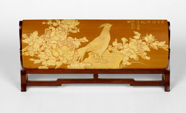 徐敏,一九七四年生于江蘇常州,擅長山水油畫。師從竹刻家范遙青研習(xí)竹刻至今有二十余載。其作品受到竹刻權(quán)威鑒賞家王世襄認(rèn)可,并親筆為她題字褒獎(jiǎng)。現(xiàn)為常州市非物質(zhì)文化遺產(chǎn)傳承人。