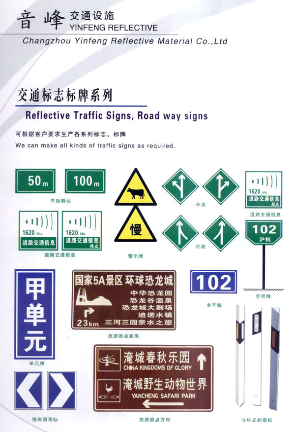 音峰集團是一個多種經(jīng)營的綜合性高科技股份公司,從事反光材料、交通安全設施、絲網(wǎng)印刷、揚聲器、紡織等產(chǎn)品的研制開發(fā)、生產(chǎn)銷售。公司自創(chuàng)立以來,堅持走科技發(fā)展的道路,以滿足客戶需求為公司宗旨,取得了令人矚目的經(jīng)濟效益和社會效益,使公司規(guī)模不斷擴大。 音峰反光材料有限公司是音峰集團下的一個新銳的子公司,主要從事系列反光材料及發(fā)光膜的研制和開發(fā)。公司擁有國內最先進的生活殘設備,最專業(yè)的研制、開發(fā)人員,公司還投入了大量的資金,年產(chǎn)值達1.5億。 公司主生產(chǎn):廣告級反光膜、工程級反光膜、車牌級反光膜、高強級反光膜、廣告級反光雙色條、發(fā)光膜、噴繪反光膜、晶彩格、電信電力反光膜,鍍鋁膜等等..........根據(jù)國家指令法規(guī):反光材料的領域,如公路標志、標牌、標線、礦山、鐵路等......... 反光膜廣泛應用于各種廣告標志牌,公路鐵路的導向牌、指示牌、地名牌、車牌,道路交通標志,物業(yè)小區(qū)標志,臨時施工標志,廣告宣傳、安全防護、高等級公路的各種警示標語,標識牌等。 公司堅持以生產(chǎn)力標準衡量企業(yè)效益和員工業(yè)績,堅持“以人為本,提倡知人、容人、用人、培養(yǎng)人,使企業(yè)具有極強的凝聚力,在激勵的市場競爭中保持旺盛的生命力!笨萍急WC品質,服務完善產(chǎn)品“是我們永遠不變的信念。 隨著世界的發(fā)展,企業(yè)經(jīng)營進入了全球化時代,本著這一共識,企業(yè)憑借自身的技術優(yōu)勢,積極參加國際間合作與競爭,努力拓展國內與國際市場,公司愿與國內外各界朋友在更廣泛的領域攜手合作,共同發(fā)展,共創(chuàng)繁榮。