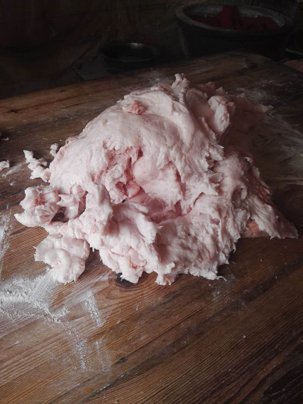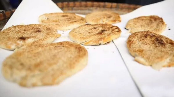常州大麻糕已經(jīng)有150多年的歷史,常武各地的麻糕師傅、麻糕店數(shù)不勝數(shù),但今天小編要帶大家去的是一家隱藏在背街小巷里,至今仍保持著傳統(tǒng)手工制法的麻糕店。 沈正昌麻糕店位于遙觀鎮(zhèn)東街、國寧寺旁,雖然店門口連個(gè)招牌都沒有,卻不妨礙四面八方的食客慕名而來,大伙看中的正是這些純手工制作,原汁原味的大麻糕。如今的店主沈國平已經(jīng)是沈家第四代做麻糕的傳人了。 秉承著爺爺那輩傳下來的手藝,他們制作的麻糕塊大實(shí)誠,用料講究,口感酥軟,深受四周鄉(xiāng)鄰的歡迎!拔覀冞是老法,酥是生板油身擦的,餡里也是生板油摻糖,是真的綠色產(chǎn)品,沒有添加劑,沒有防腐劑,也不用甜蜜素,都是真家伙! 每天凌晨一兩點(diǎn)鐘,沈國平就要去采買當(dāng)天最新鮮的豬板油,回來清理干凈,和上面粉攪拌均勻,制成面團(tuán)。麻糕的制作主要由沈國平妻子和兩個(gè)姊妹來完成。揉面、搓胚子、配油酥,按餡心、搟均勻,整個(gè)過程行云流水,連貫無比。 當(dāng)爐火燒得正旺,溫度能高達(dá)近300度,沈國平就上場了,赤手空拳,一撈一貼,一秒鐘的功夫,就把麻糕貼到了桶壁上。不過幾分鐘的功夫,麻糕就出爐了。經(jīng)過炭火爐子烤出來的,比一些電烤爐烤出的更香、更脆。