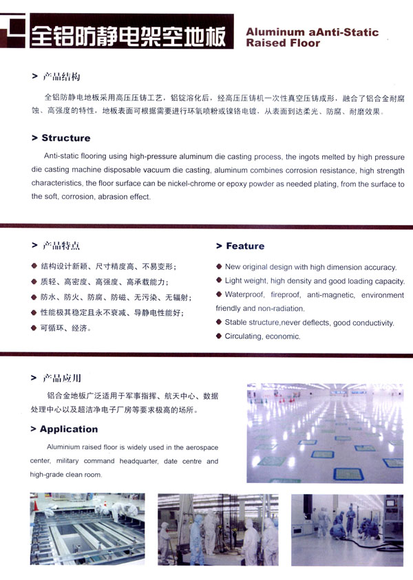 常州市蘇杰機(jī)房地板有限公司是高架地板專業(yè)制造商,專業(yè)從事防靜電地板、OA網(wǎng)絡(luò)地板等各種系列高架地板的研發(fā)、制造和銷售,并提供各種機(jī)房地面和智能化辦公區(qū)地面的整體解決方案。 公司廠區(qū)面積30000平方米,擁有全鋼地板生產(chǎn)線兩條,木基、硫酸鈣基地板生產(chǎn)線各一條,年綜合產(chǎn)能100萬平方米。生產(chǎn)蘇杰牌防靜電地板系列和蘇杰牌網(wǎng)絡(luò)地板系列,主要產(chǎn)品有全鋼防靜電架空地板、全鋼OA網(wǎng)絡(luò)地板、瓷磚貼面防靜電地板、硫酸鈣防靜電地板、木基防靜電地板、鋁合金防靜電地板、防靜電通風(fēng)地板等。 蘇杰人秉承“科技先導(dǎo)、市場為本、持續(xù)發(fā)展”的企業(yè)發(fā)展觀,堅(jiān)持“以先進(jìn)技術(shù)裝備為基礎(chǔ),以現(xiàn)代化管理為依托,以專業(yè)化服務(wù)為保障”的宗旨,使公司不斷發(fā)展壯大成為現(xiàn)代化的企業(yè)。 蘇杰人堅(jiān)持“嚴(yán)謹(jǐn)思考、嚴(yán)密操作、嚴(yán)格檢查、嚴(yán)肅驗(yàn)證”的品質(zhì)理念和“以客戶為中心”的服務(wù)理念,始終致力于產(chǎn)品的技術(shù)創(chuàng)新和質(zhì)量創(chuàng)優(yōu),為用戶提供優(yōu)質(zhì)的產(chǎn)品、合理的價(jià)格和貼心的服務(wù)。 常州市蘇杰機(jī)房地板有限公司將不斷開發(fā)和制造一流的產(chǎn)品,吸引和培養(yǎng)一流的人才,提供和完善一流的服務(wù),樹立和保持一流的形象,與時(shí)俱進(jìn),共謀發(fā)展。