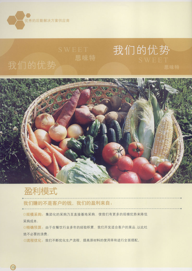 常州市思味特餐飲有限公司是一家專(zhuān)業(yè)從事企事業(yè)后勤服務(wù)的有限責(zé)任公司,公司從承包食堂起步,逐漸發(fā)展為經(jīng)營(yíng)團(tuán)膳承包、營(yíng)養(yǎng)送餐、生活區(qū)管理、連鎖餐廳的綜合型企業(yè)。2008年公司斥資100萬(wàn)元,在常州興建了可以同時(shí)提供3000餐膳食的中央廚房,重點(diǎn)打造“和美客”后勤服務(wù)品牌,全力為企事業(yè)單位解決后勤后顧之憂(yōu)。 到目前為止,我們合作成功的企事業(yè)單位超過(guò)50多家,服務(wù)人數(shù)突破15萬(wàn),合作單位包括國(guó)家機(jī)關(guān)、國(guó)有企業(yè)、三資企業(yè)、民營(yíng)企業(yè)、學(xué)校、醫(yī)院等,其中不乏國(guó)際知名品牌公司。 和美客愿為更多的國(guó)內(nèi)外企事業(yè)單位及機(jī)關(guān)團(tuán)體分憂(yōu)解難,從廚房設(shè)計(jì)、菜品配送、團(tuán)膳承包、到生活區(qū)管理等提供全方位的服務(wù)。