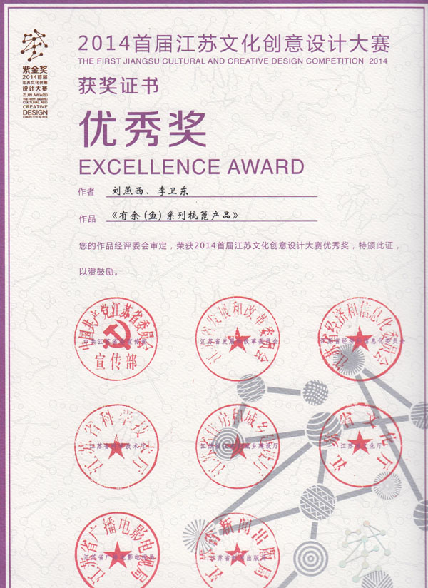 文化創(chuàng)意大獎(jiǎng)賽“紫金獎(jiǎng)” ,有余(魚)系列梳篦產(chǎn)品獲得了優(yōu)秀獎(jiǎng)