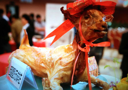 張萬(wàn)成羊莊一家綜合性的公司,下設(shè)酒店,羊產(chǎn)品加工廠,屠宰廠,山羊養(yǎng)殖場(chǎng)。 酒店位于常州西夏墅浦河村,酒店羊宴規(guī)模占地30畝,酒店主要經(jīng)營(yíng)特色全羊宴。 一個(gè)祖?zhèn)鞯臍⒀虼髴,傳到張萬(wàn)成,已是第六代了。張家的羊肉,素來(lái)以肉質(zhì)鮮美著稱,張萬(wàn)成羊莊的主人張建龍是第六代傳人,張家的羊肉素來(lái)以肉質(zhì)鮮美著稱,從常州新北區(qū)沿黃河西路往機(jī)場(chǎng)方向直行至羅溪右轉(zhuǎn),穿過滬寧高速高架橋后不遠(yuǎn)處左拐沿翠屏湖路直走便能看到張萬(wàn)成羊莊,酒店上下共有三層,2000多平方米經(jīng)營(yíng)面積,能同時(shí)接待近30桌客人的規(guī)模。有自己的羊圈和屠宰場(chǎng),每天殺20多只,菜式近100道。光是原料,就從原來(lái)羊身上的幾個(gè)主要部位,增加到除了羊牙齒以外的一只整羊全部可以入菜。烹制方式,更是在本土單一的燒、炒、煮基礎(chǔ)上,借鑒了東北、廣東、四川等地的烹羊特色,增加了蒸、涮、烤、煎、炸等多種方式。 注重原汁原味的冷菜 白切羊肉:精選羊頸部的活肉精制而成,肥瘦適中,絲毫沒有一般羊肉的膻味,沾少許張萬(wàn)成羊莊秘制的醬料,口感非常好。 美味羊舌:張家的羊舌感覺是用特殊的醬料腌制過的,咸中略有甜味,口感鮮嫩卻肥而不膩,味道很香。 除了白切羊肉和羊舌以外還有許多冷菜品種,如羊肚、羊心、羊耳朵等。。 火候控制精準(zhǔn)的炒菜 炒羊肝:地道的農(nóng)家風(fēng)味,與大蒜葉同炒,蒜香濃郁,羊肝鮮嫩,這羊肝可是火候菜,羊肝鮮嫩與否不但取決于廚師對(duì)火候的掌握,還在于上桌放置時(shí)間的長(zhǎng)短,所以羊肝上桌后要盡快食用,看羊肝是否鮮嫩,只需用筷子挑起并輕輕抖動(dòng),有彈性者為佳。 美味羊?qū)殻阂跃曼S、鮑味菇爆炒的羊?qū)殻f是滋補(bǔ)壯陽(yáng)的一道金貴菜,配料講究的燒菜系列 宮廷燴羊肚:較為金貴的菜品,配菜貴于主料,是以名貴的素鮑和新鮮的筍絲與羊肚同煮,口感濃郁,營(yíng)養(yǎng)豐富。 海參白燒羊肉:將取自7個(gè)月大羔羊身上的帶皮腿肉與海參一同煨煮,菜肴美容滋補(bǔ),兩種鮮味互相補(bǔ)益達(dá)到完美交融狀態(tài),口感甚佳。 魚羊鮮:新鮮的青魚配上羊肉,既有本地羊肉的肥嫩,又有魚肉的鮮香,鮮!鮮!古代人造字就是有道理!”店里可以根據(jù)客人的需要配以魚回魚、鯰魚、鱖魚等。 特色的羊宴點(diǎn)心 羊肉餛飩:羊莊老板自創(chuàng)的羊宴點(diǎn)心,看似普通的油燜跑蛋卻另有乾坤,將蛋掀開便能看見藏于其中的羊肉菜餡餛飩,菜和肉都是自家新鮮的原料,很好吃。 手工搟面:不知道是因?yàn)槊媸钦嬲檬止{制還是因?yàn)榧尤肓缩r味十足的羊湯,總之味道非常好,面勁道,湯也鮮美! 張萬(wàn)成羊莊的羊湯也是遠(yuǎn)近聞名,因?yàn)槭亲鎮(zhèn)鞯氖炙,做出?lái)的羊湯不腥不膻,香醇不膩,味道十分鮮美,加入粉絲或者面條更是難得的美味。