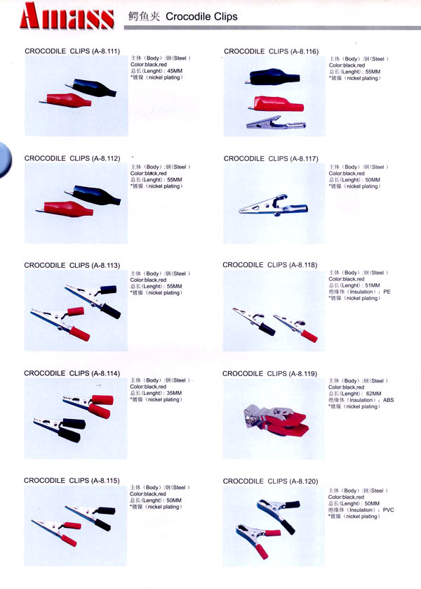 本公司專業(yè)生產(chǎn)各類香蕉插頭,香蕉插座,接線柱,電瓶夾,鱷魚夾,測試導(dǎo)線,測試筆等。產(chǎn)品分2mm/2.5mm/3mm/3.5mm/4mm五大系列,百余種款式, 各種香蕉插廣泛用于儀器、儀表、電力測試、教學(xué)、玩具,視聽設(shè)備、醫(yī)療儀器,保健產(chǎn)品等領(lǐng)域。公司技術(shù)力量雄厚,生產(chǎn)工藝先進,產(chǎn)品遠銷港、臺、歐美,并與飛利浦等國際品牌配套。公司本著精益求精的理念,歡迎新老客戶光臨。 我們擁有資深的工程師和豐富的電子產(chǎn)品銷售經(jīng)驗,專業(yè)生產(chǎn)各類電子接插件產(chǎn)品。 香蕉插頭,香蕉插座,電瓶夾,鱷魚夾等品種齊全、 質(zhì)量可靠,致力服務(wù)于通訊、數(shù)據(jù)通信、消費類電子產(chǎn)品、計算機和計算機外圍設(shè)備以及工業(yè)應(yīng)用等領(lǐng)域,能給客戶提供全面采購解決方案。 我們秉承穩(wěn)健作風(fēng)、誠實經(jīng)營、合理價格、完善服務(wù)的宗旨,在全體客戶的支持下,公司不斷創(chuàng)新進取,業(yè)績蒸蒸日上,已與數(shù)十家電子零件制造商及其分支機構(gòu)建立密切合作關(guān)系,在國內(nèi)擁有數(shù)百家固定客戶。
