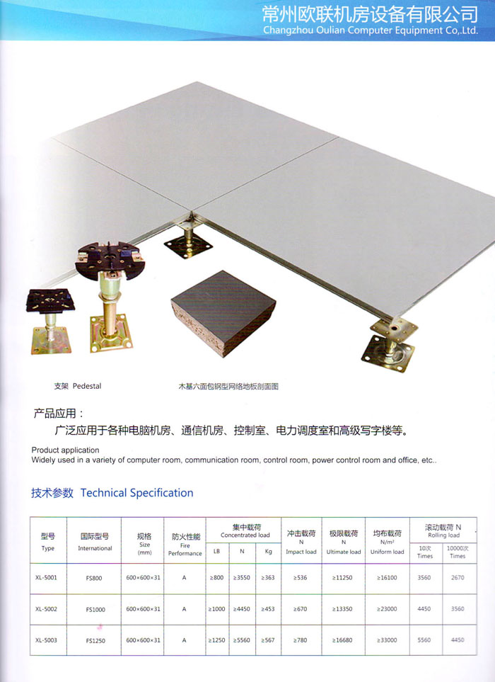 防靜電高架活動地板、全鋼地板、陶瓷地板是計算機行業(yè)發(fā)展起來的新型鋪地材料,隔離了潮氣、靜電灰塵,最重要的是解決了綜合布線問題,無需預埋管線,可隨時拆卸、搬移,保證了資訊設備完整的優(yōu)點,適應了智能化樓宇中信息自動化技術(shù)對所處環(huán)境的特定要求,避免了廣大客戶的雙重投資,使現(xiàn)代化辦公程度更加高效,辦公場所更加舒適。 “歐聯(lián)”系列全鋼地板,符合國家安全要求,種類完備多樣,其中防靜電陶瓷地板、硫酸鈣地板等除具有普通瓷質(zhì)的裝飾和實用性外,其耐磨、防水、防火功能優(yōu)于其它同類產(chǎn)品,防靜電系列地板,能切合不同客戶的要求,其靈活的配置,深受客戶歡迎,不同材質(zhì)的地板結(jié)構(gòu)使設計師的設計空間比傳統(tǒng)的更加廣闊自由和善變。 公司大力發(fā)展國內(nèi)外銷售業(yè)務,多次中標國內(nèi)重點工程 ,例:哈爾濱醫(yī)科大學、山東大學、上海普通機場等。 公司將一如既往開發(fā)和制造一流的產(chǎn)品,愿與廣大有識之士合作發(fā)展,共創(chuàng)美好未來。