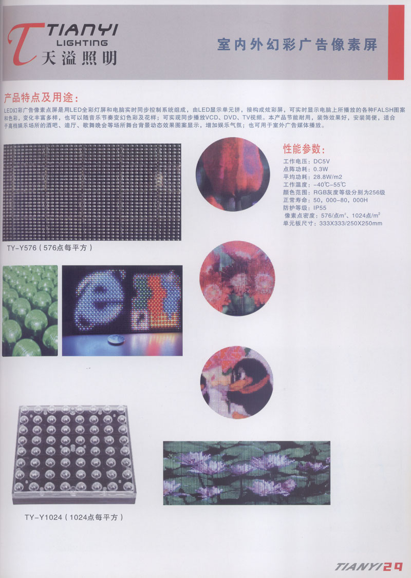 天溢照明是中國領(lǐng)先的專業(yè)從事LED廣告照明裝飾燈具設(shè)計、系統(tǒng)開發(fā)、燈具制造、工程服務(wù)一體的專業(yè)型公司,本公司產(chǎn)品已廣泛應(yīng)用于全國大多數(shù)城市夜景亮化景觀照明、酒店休閑娛樂夜場夢幻燈光、戶內(nèi)外廣告宣傳、建筑及室內(nèi)照明以及家居裝飾等場合。
